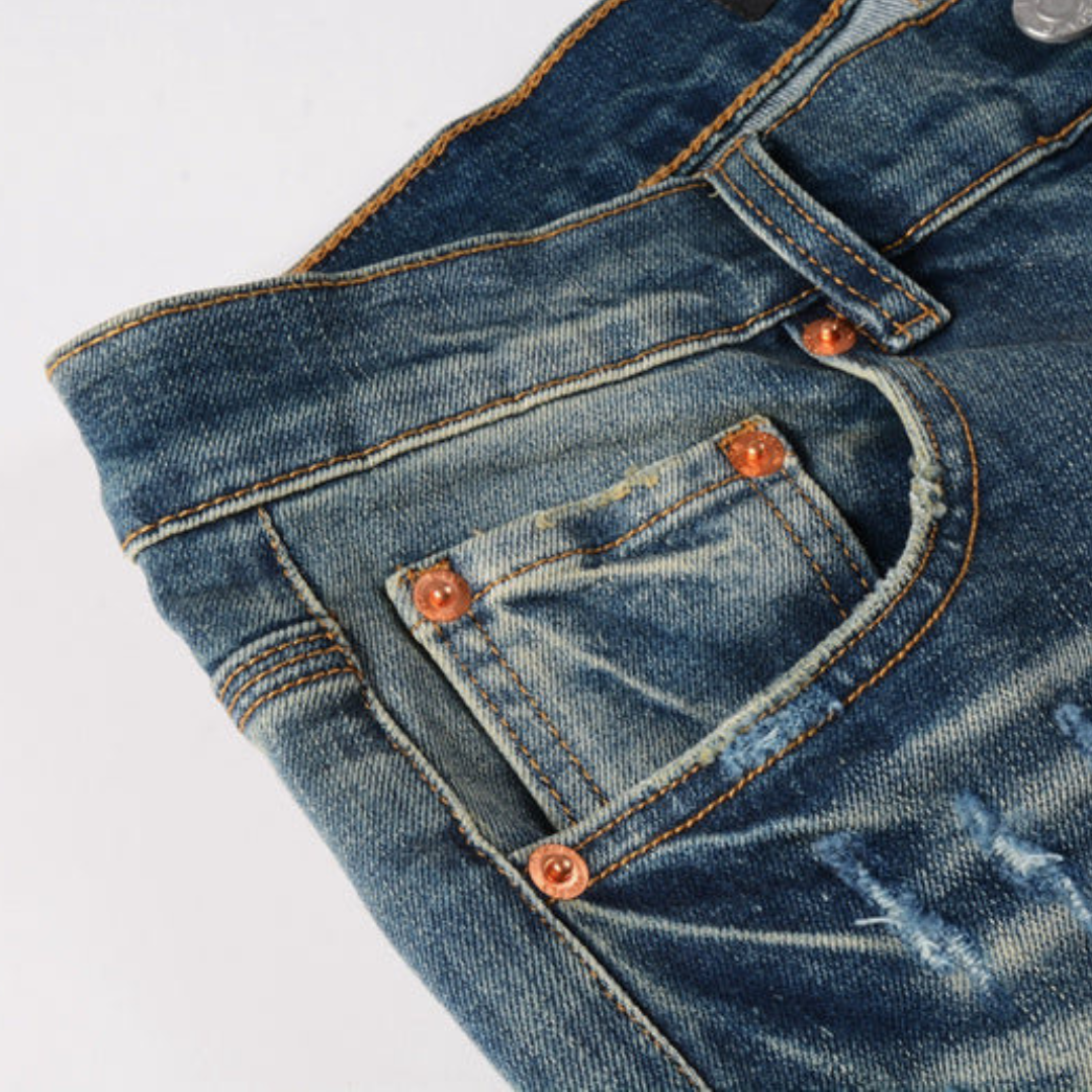 Washed Dark Blue Jeans